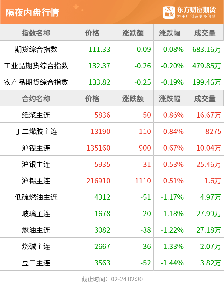 隔夜行情 每日精选