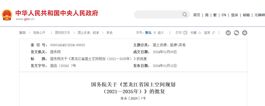 日前,国务院发布关于《黑龙江省国土空间规划(2021—2035年)》的批复。