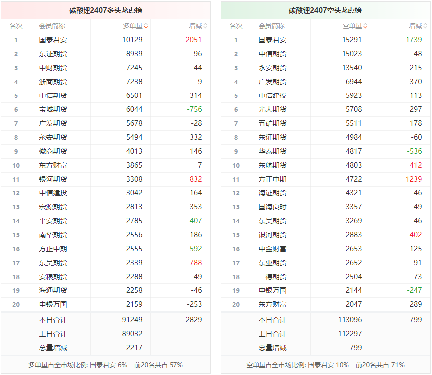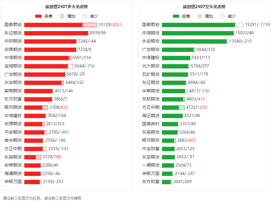总体而言,碳酸锂2407合约今日增仓上行,多空持仓排名前20席中,多空双方均呈进场态势,多头进场意愿强于空头。