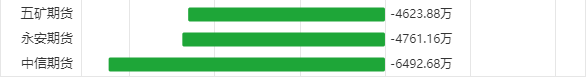 一周内中信期货、永安期货、五矿期货在碳酸锂上亏损居前,三机构分别亏损6492.68万元,4761.16万元,4623.88万元。
