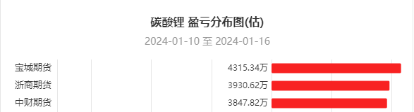 数据显示,一周内宝城期货、浙商期货、中财期货在碳酸锂上盈利居前,三机构分别盈利4315.34万元,3930.62万元,3847.82万元。