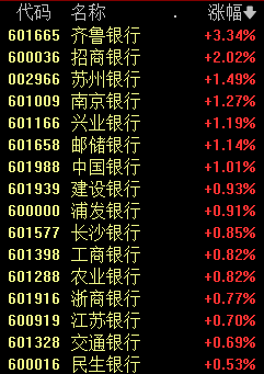 今天上午,大金融表现相对抗跌。其中,银行板块上涨,齐鲁银行、招商银行等个股领涨。