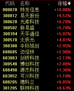 今天上午,光模块板块表现活跃,易天股份、特发信息等个股领涨。